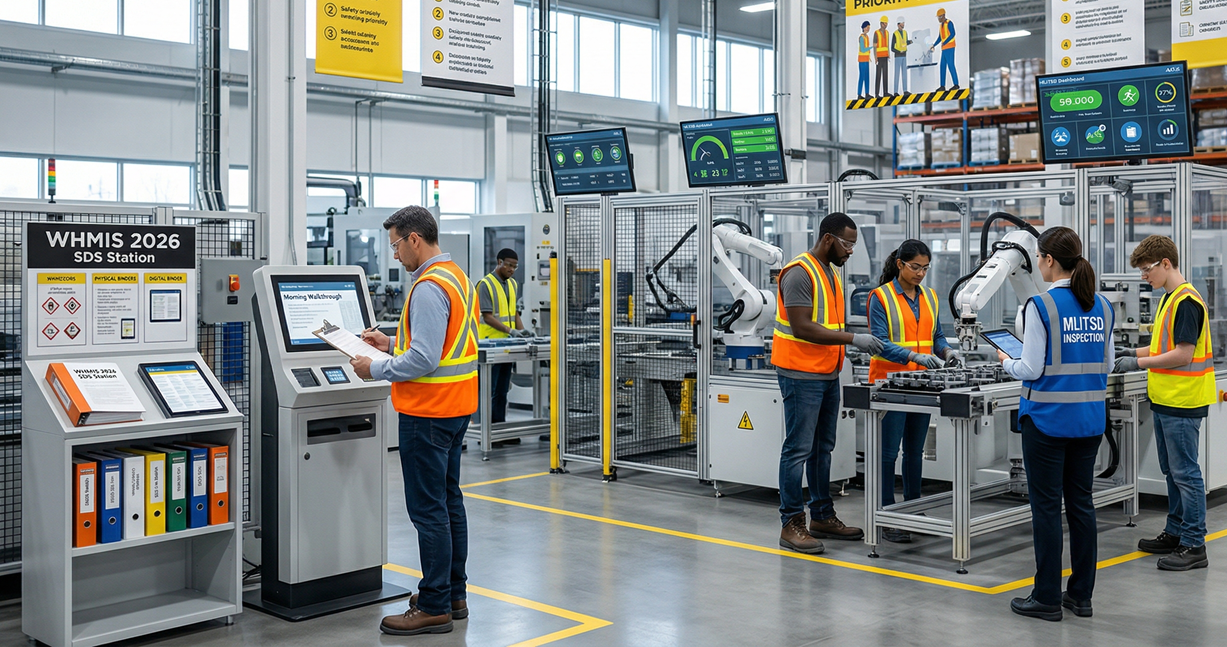 - The SDS Station: Is the WHMIS binder accessible, and does it contain 2026-compliant Safety Data Sheets?